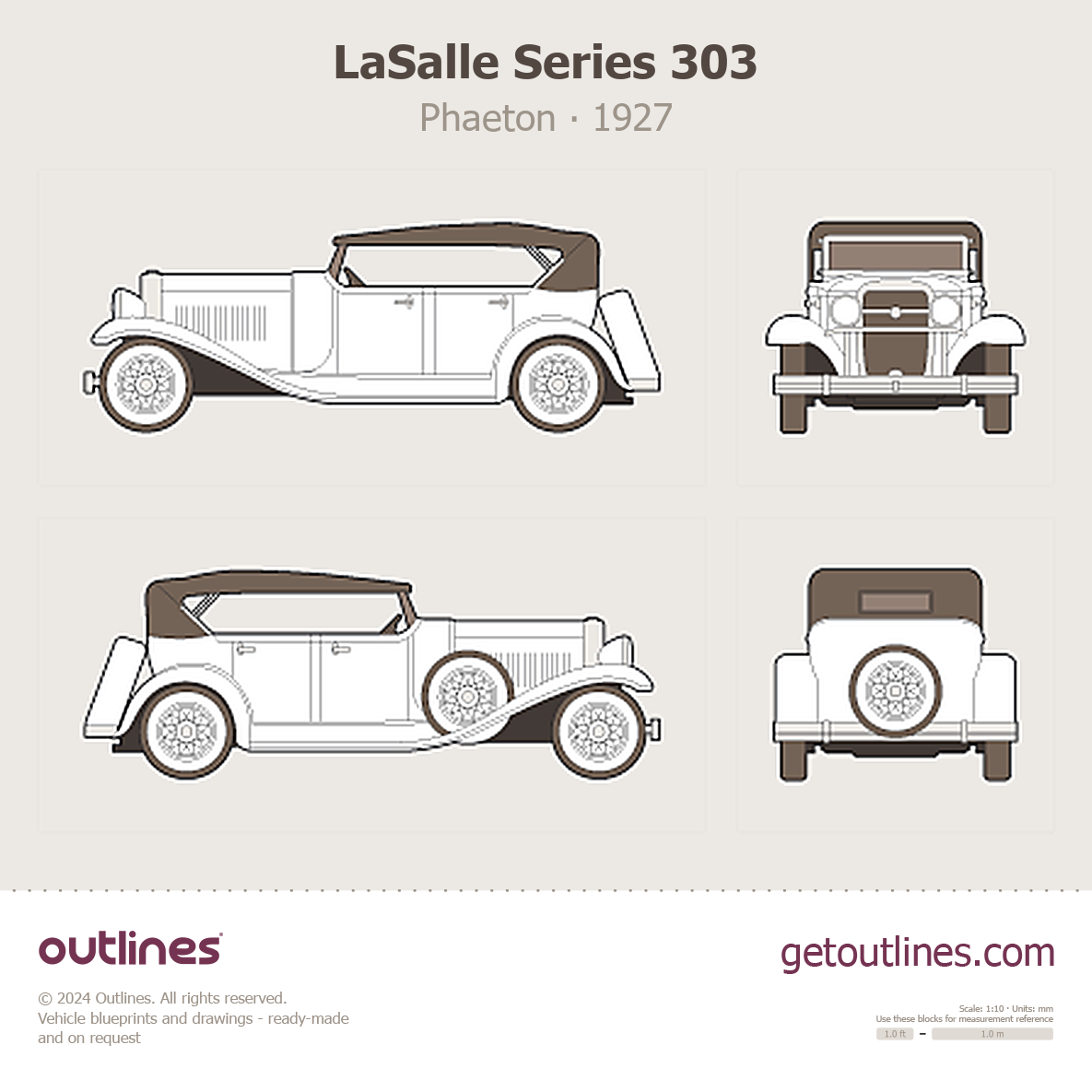 This 1927 LaSalle Series 303 Phaeton blueprint helps designers, wrap studios, and 3D artists simplify their workflow and save valuable time for creative work instead of routine tasks.
