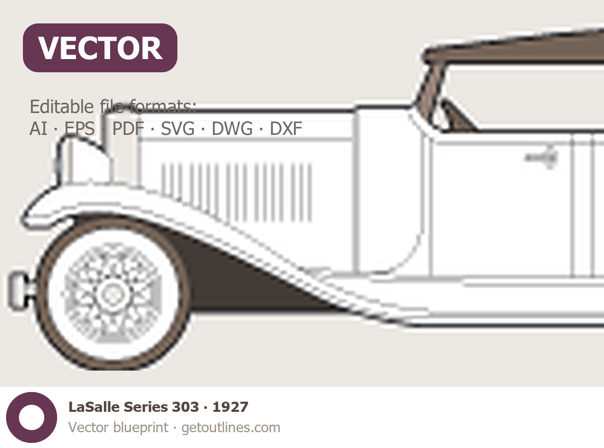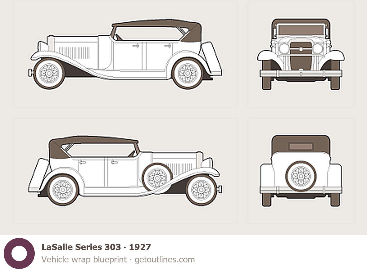 This template is suitable for LaSalle Series 303 models from 1927 to 1933, including 1927, 1928, 1929, 1930, and 1933 model years, and is commonly used for vehicle wrap and signage design.