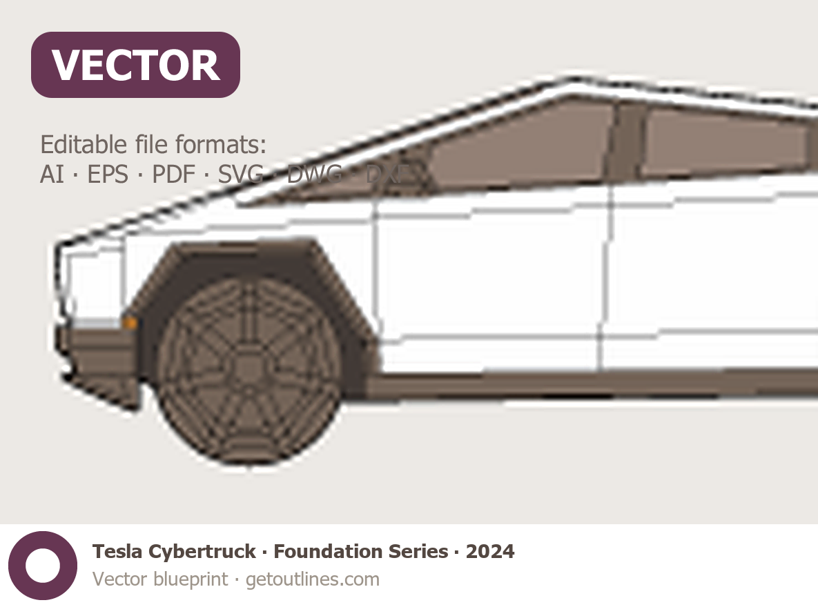 Buy this Tesla Cybertruck blueprint and line drawing in high-quality editable vector file formats. Best for 3D and car wrap design.