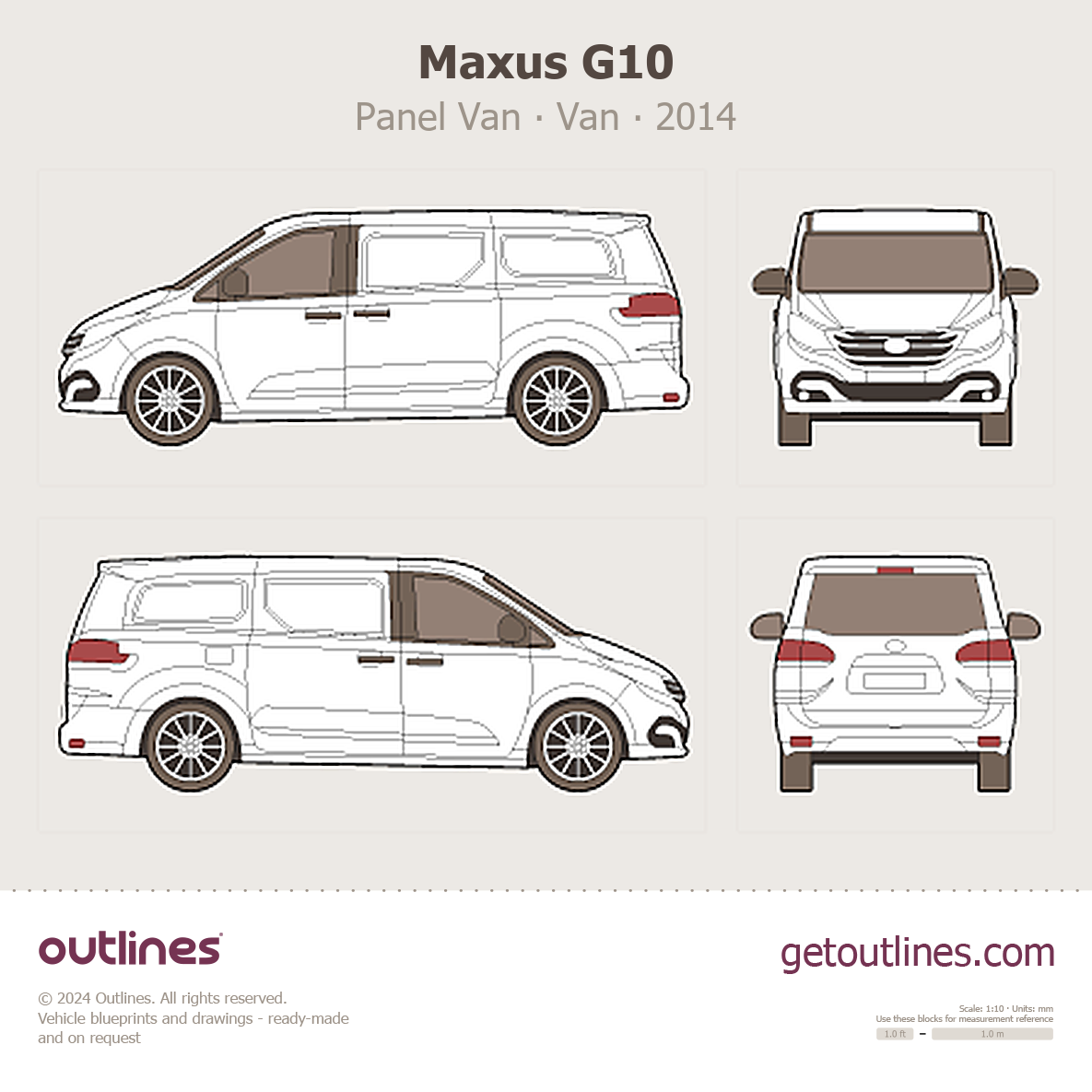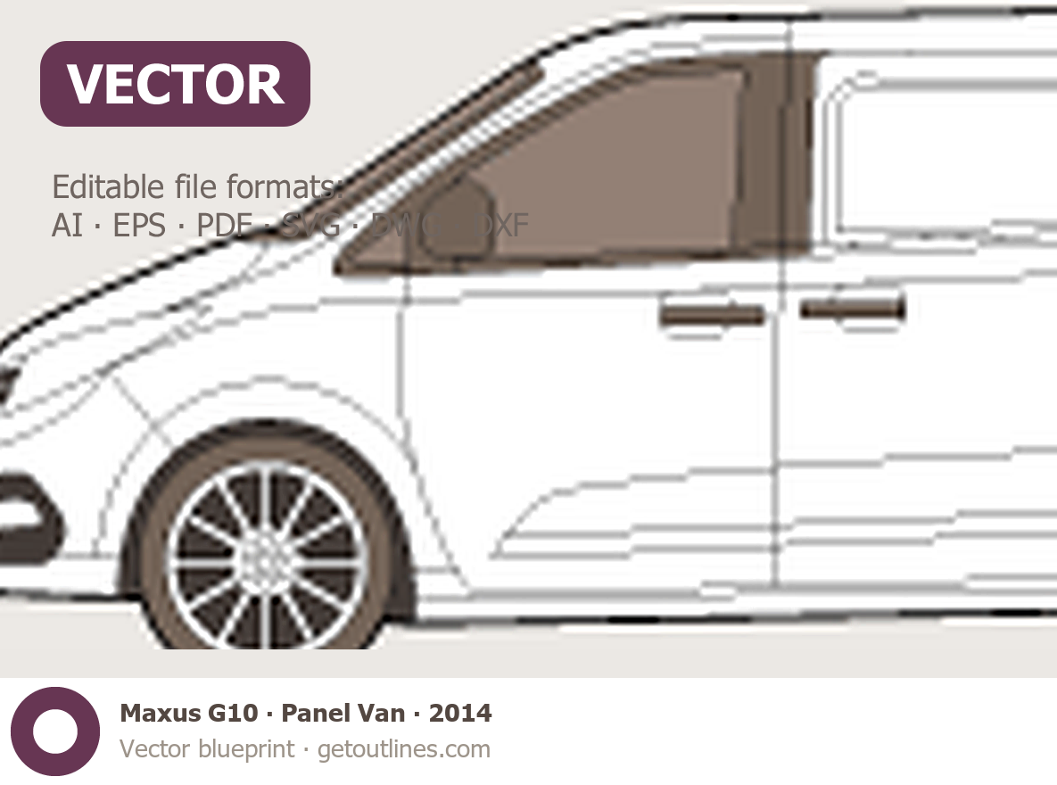 This 2014 Maxus G10 Panel Van Van blueprint helps designers, wrap studios, and 3D artists simplify their workflow and save valuable time for creative work instead of routine tasks.
