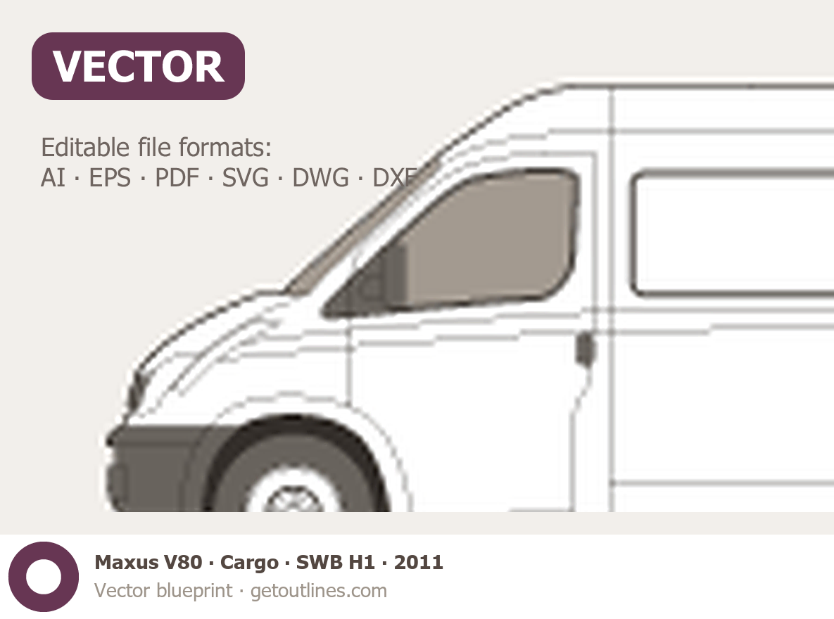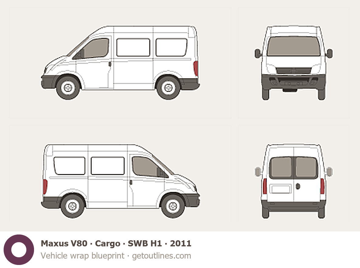 This 2011 Maxus V80 Cargo SWB H1 Van blueprint helps designers, wrap studios, and 3D artists simplify their workflow and save valuable time for creative work instead of routine tasks.