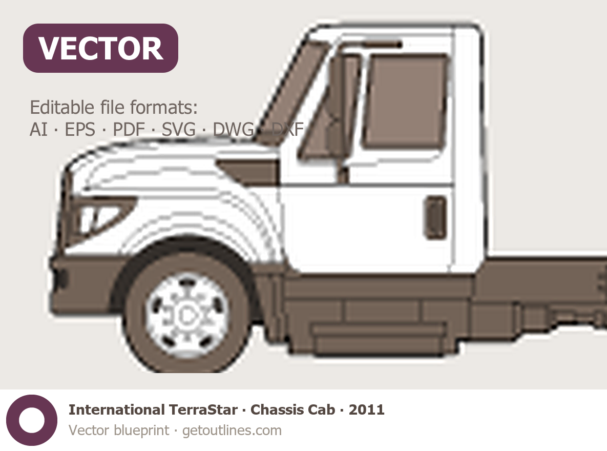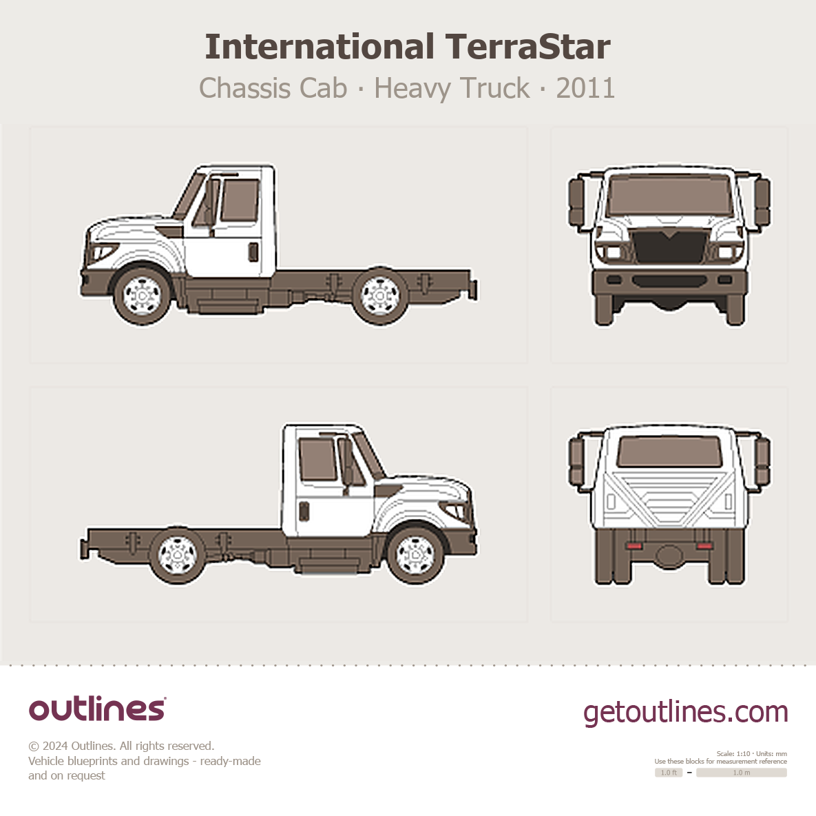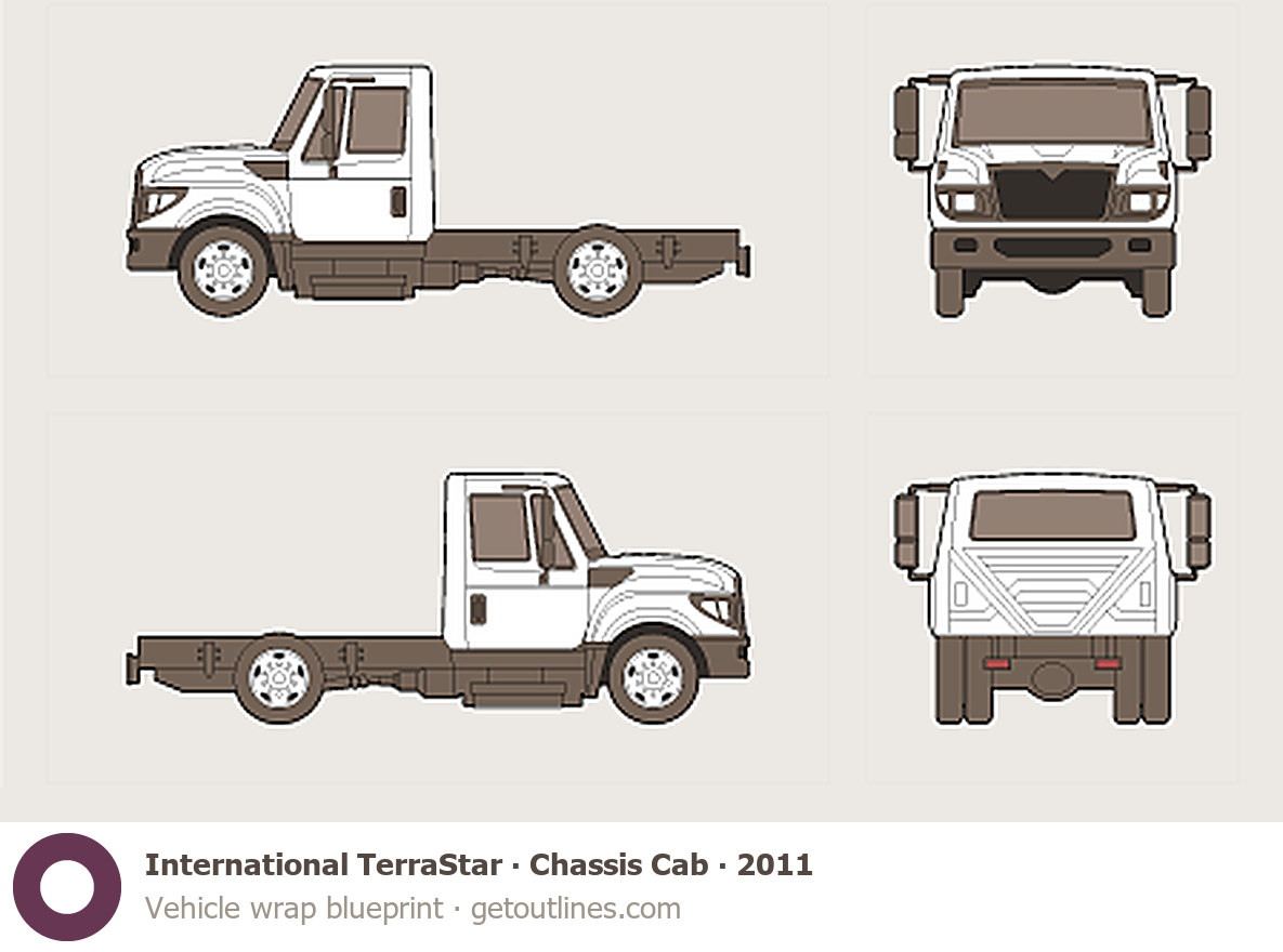 This 2011 International TerraStar Chassis Cab Heavy Truck blueprint helps designers, wrap studios, and 3D artists simplify their workflow and save valuable time for creative work instead of routine tasks.