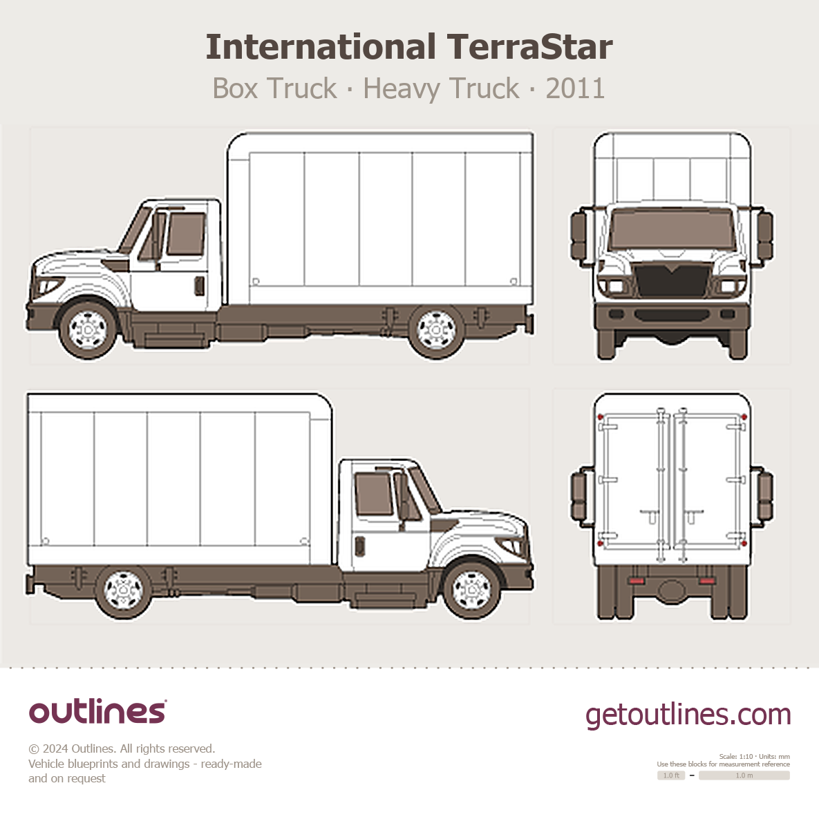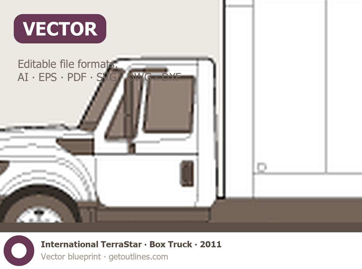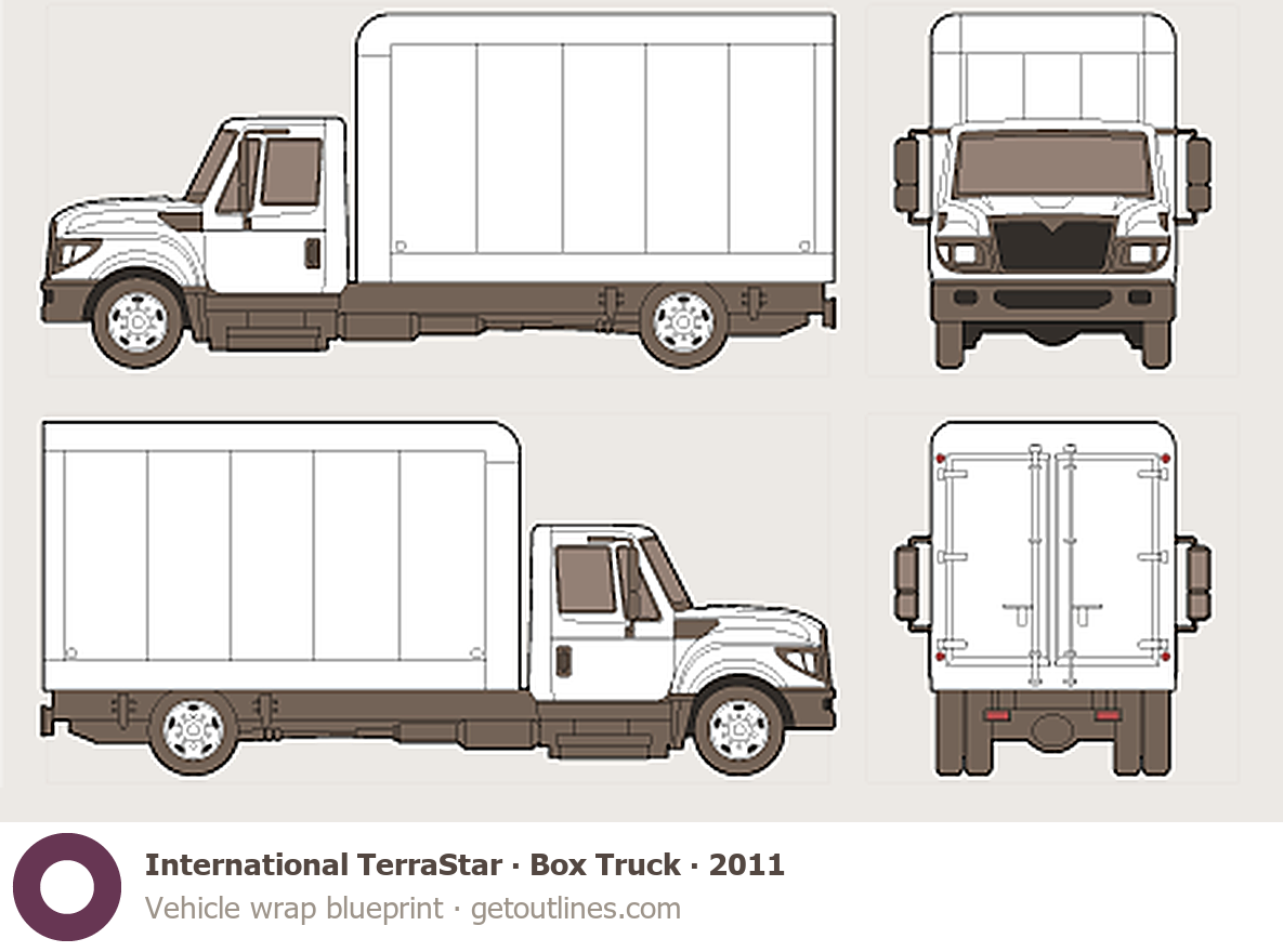 This 2011 International TerraStar Box Truck Heavy Truck blueprint helps designers, wrap studios, and 3D artists simplify their workflow and save valuable time for creative work instead of routine tasks.