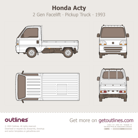 Buy this Honda Acty 2 Gen Facelift Mk II blueprint and line drawing in high-quality editable vector file formats. Best for 3D and car wrap design.