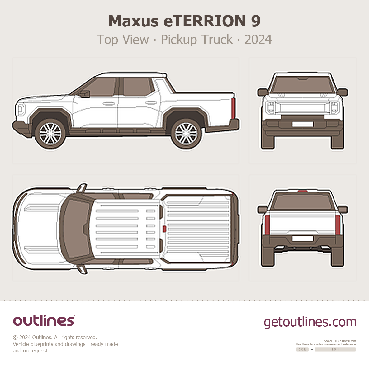 Buy this Maxus eTERRION 9 blueprint and line drawing in high-quality editable vector file formats. Best for 3D and car wrap design.
