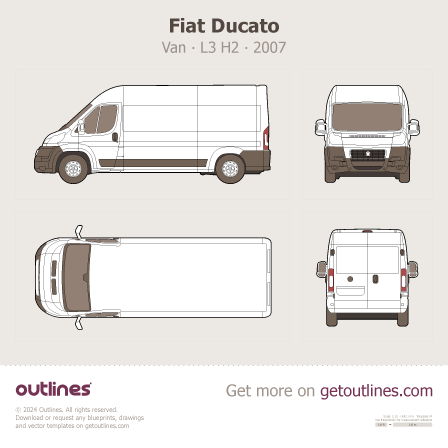 Buy this Fiat Ducato Van blueprint and line drawing in high-quality editable vector file formats. Best for 3D and car wrap design.