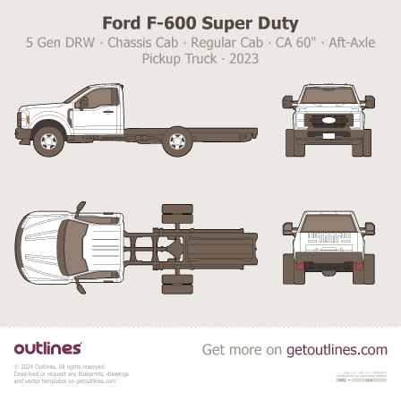 Buy this Ford F-600 Super Duty 5 Gen blueprint and line drawing in high-quality editable vector file formats. Best for 3D and car wrap design.