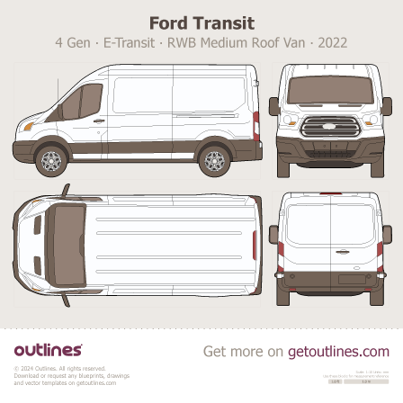 Buy this Ford Transit [Legacy] 4 Gen Van blueprint and line drawing in high-quality editable vector file formats. Best for 3D and car wrap design.