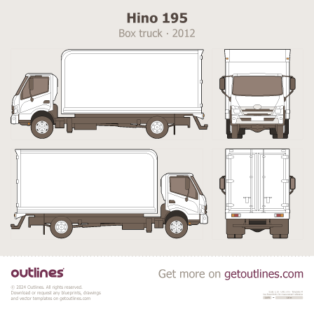 This 2015 Hino 195 1 Gen Facelift '21 Box Truck Heavy Truck blueprint helps designers, wrap studios, and 3D artists simplify their workflow and save valuable time for creative work instead of routine tasks.