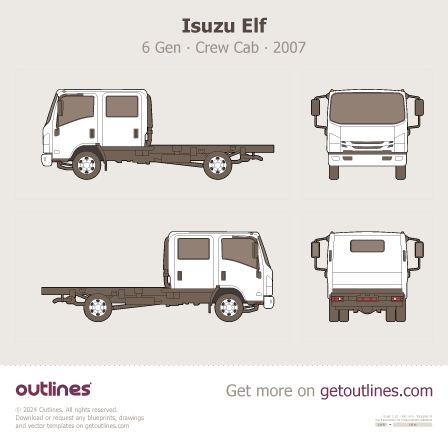 Buy this Isuzu Elf 6 Gen blueprint and line drawing in high-quality editable vector file formats. Best for 3D and car wrap design.