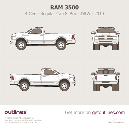 2010 Ram 3500 4 Gen Regular Cab 8' Box ∙ DRW Pickup Truck blueprint
