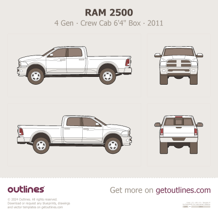 2010 Ram 2500 4 Gen Crew Cab 6'4" Box Pickup Truck blueprint