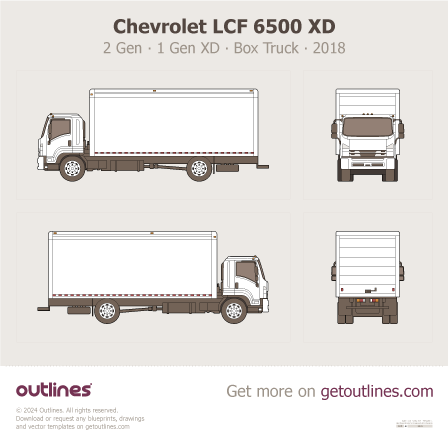 Buy this Chevrolet LCF 7500 XD 1 Gen blueprint and line drawing in high-quality editable vector file formats. Best for 3D and car wrap design.
