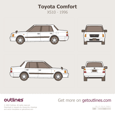 Buy this Toyota Comfort XS10 blueprint and line drawing in high-quality editable vector file formats. Best for 3D and car wrap design.