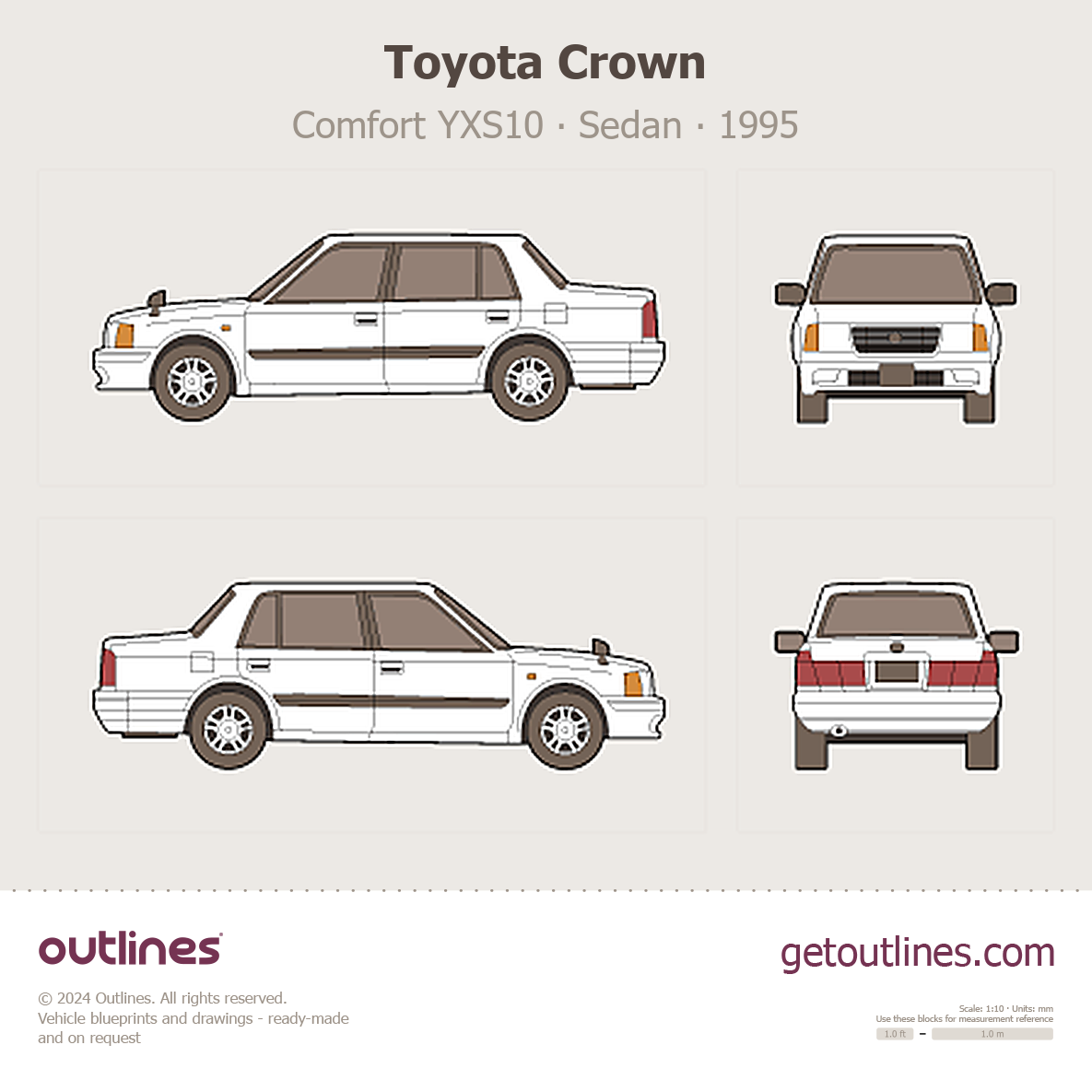 This 1995 Toyota Crown Comfort YXS10 Sedan blueprint helps designers, wrap studios, and 3D artists simplify their workflow and save valuable time for creative work instead of routine tasks.