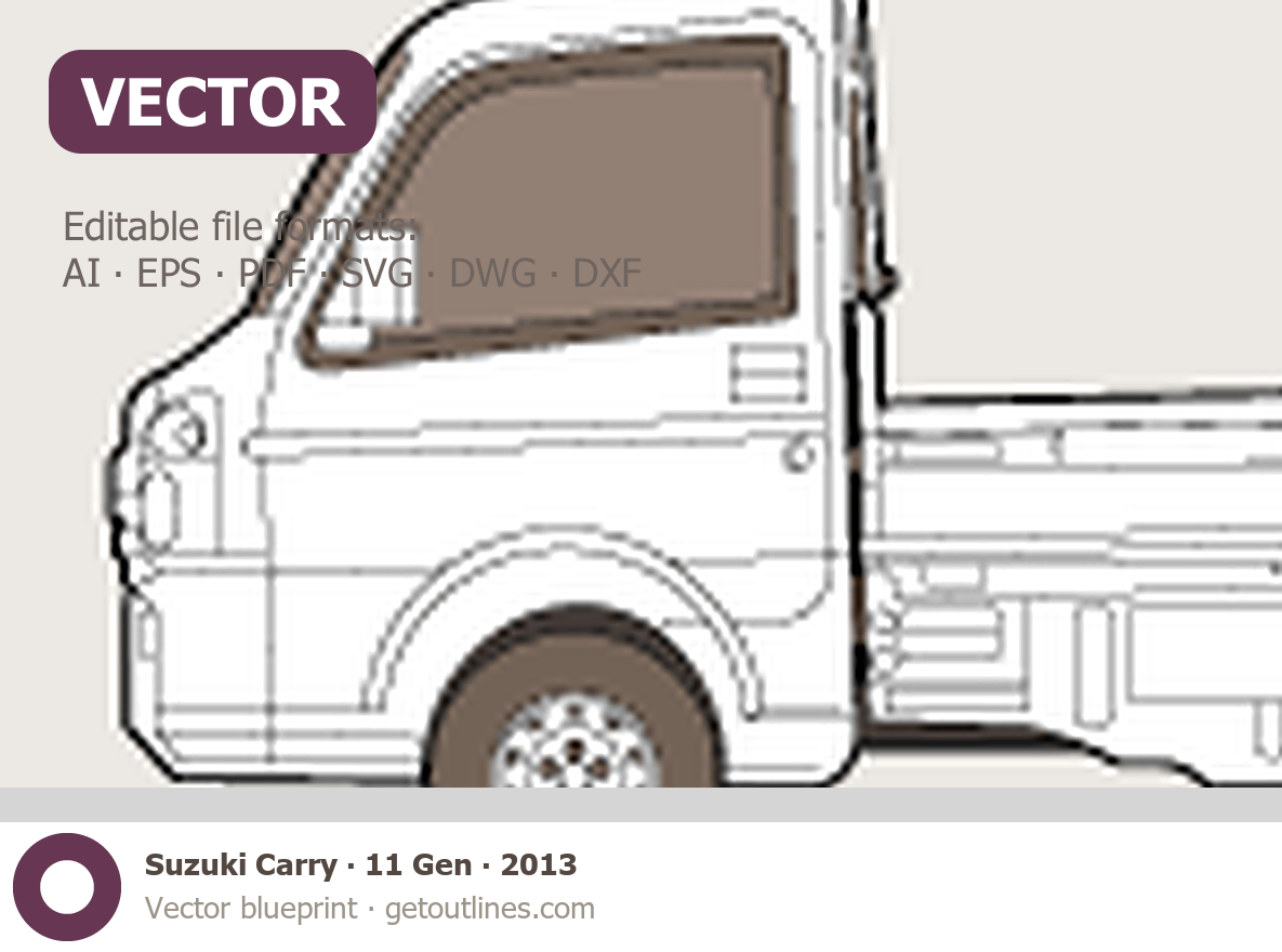 This 2013 Suzuki Carry 11 Gen Pickup Truck blueprint helps designers, wrap studios, and 3D artists simplify their workflow and save valuable time for creative work instead of routine tasks.