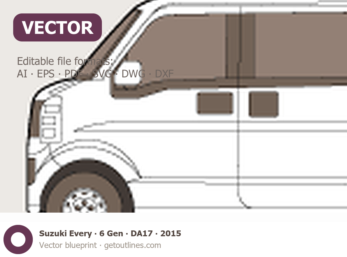 This 2015 Suzuki Every 6 Gen ∙ DA17 Van blueprint helps designers, wrap studios, and 3D artists simplify their workflow and save valuable time for creative work instead of routine tasks.