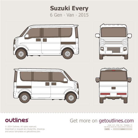 Buy this Suzuki Every 6 Gen ∙ DA17 blueprint and line drawing in high-quality editable vector file formats. Best for 3D and car wrap design.