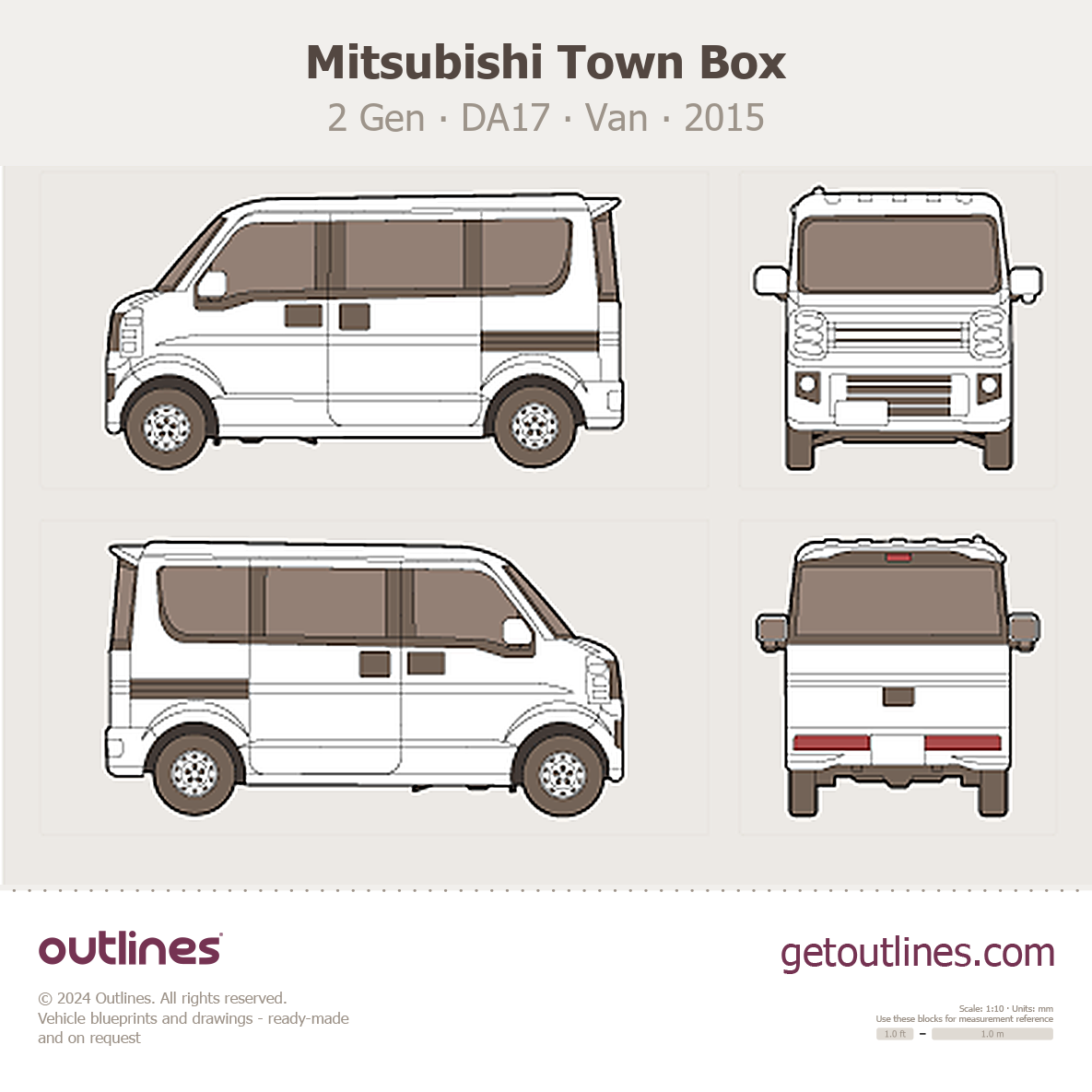 This is a blueprint of the Town Box, produced by carmaker Mitsubishi in 2015 - 2025. It features a Van body design and is classified as a Commercial vehicle.