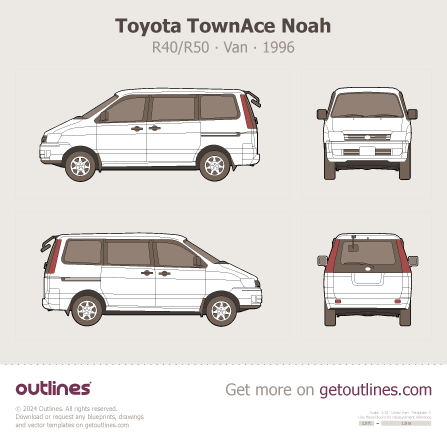 Buy this Toyota LiteAce R40 ∙ R50 blueprint and line drawing in high-quality editable vector file formats. Best for 3D and car wrap design.