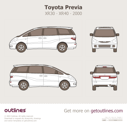 Buy this Toyota Estima Hybrid XR30 ∙ XR40 blueprint and line drawing in high-quality editable vector file formats. Best for 3D and car wrap design.