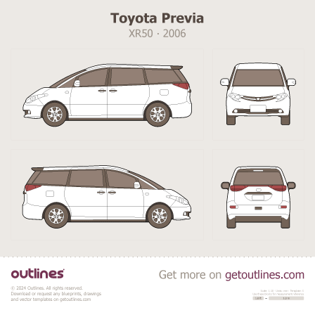 Buy this Toyota Estima Hybrid XR50 blueprint and line drawing in high-quality editable vector file formats. Best for 3D and car wrap design.