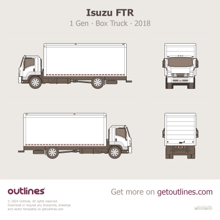 Buy this Isuzu FVR 5 Gen blueprint and line drawing in high-quality editable vector file formats. Best for 3D and car wrap design.