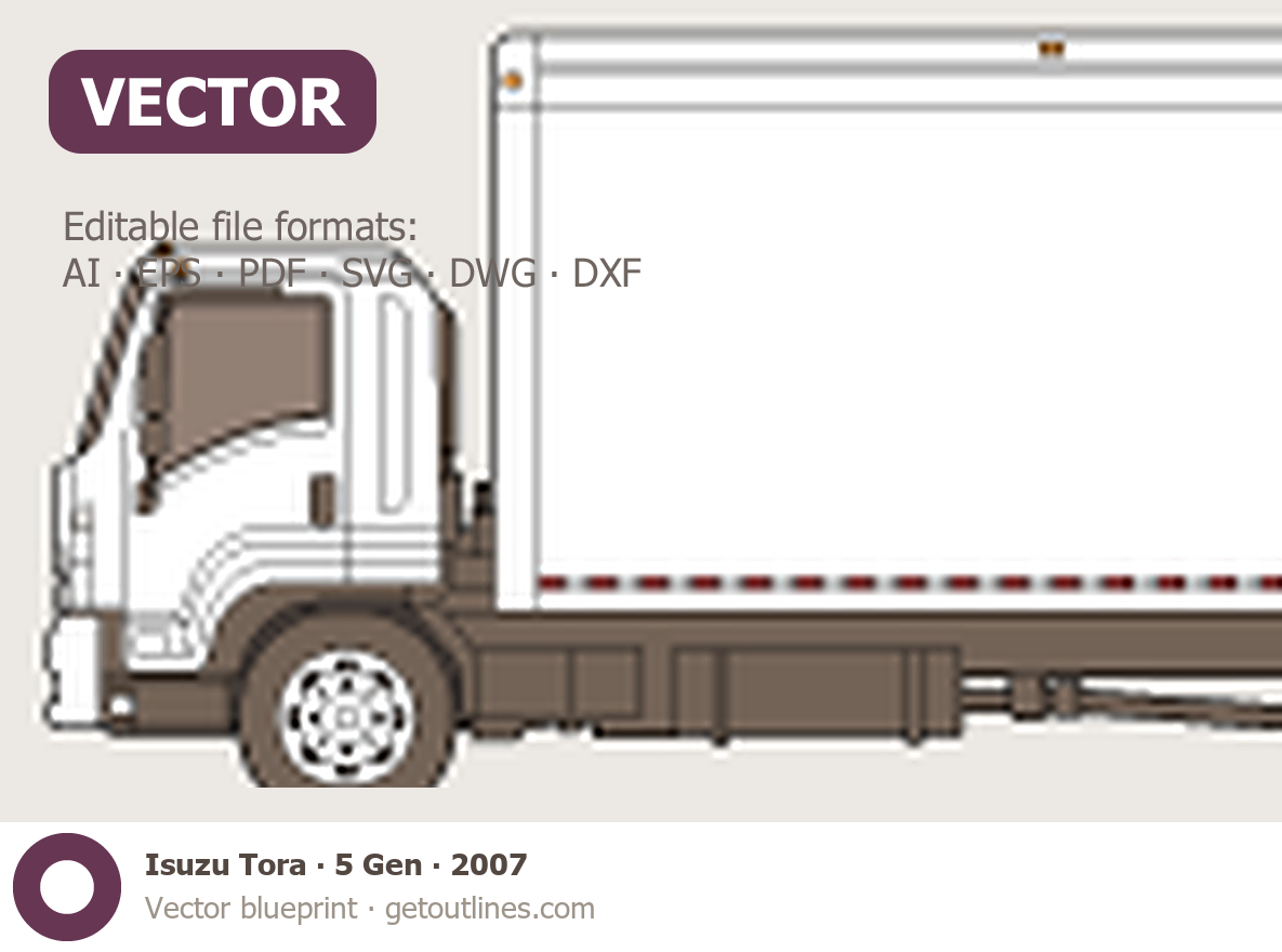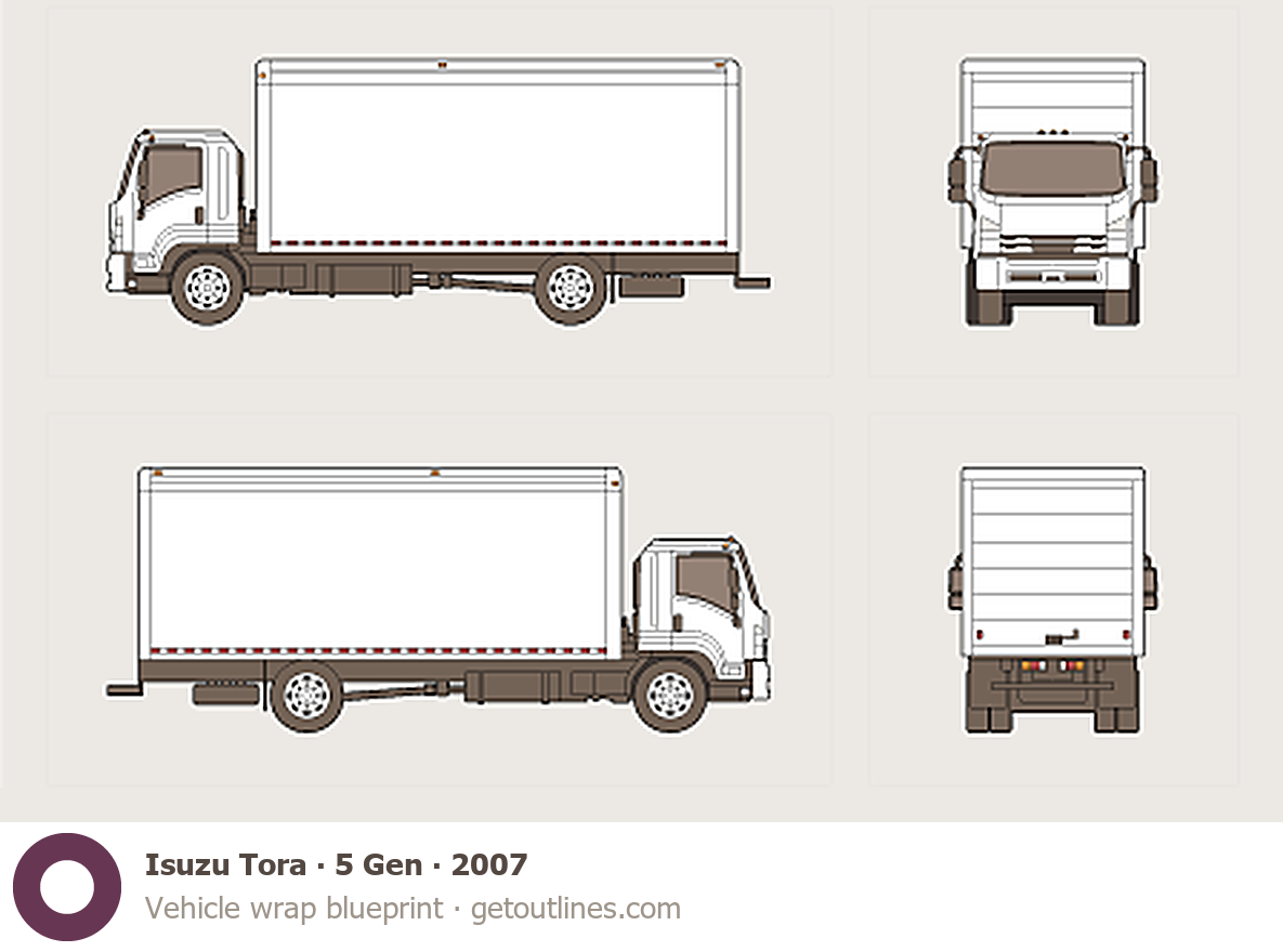 This 2007 Isuzu Tora 5 Gen Heavy Truck blueprint helps designers, wrap studios, and 3D artists simplify their workflow and save valuable time for creative work instead of routine tasks.