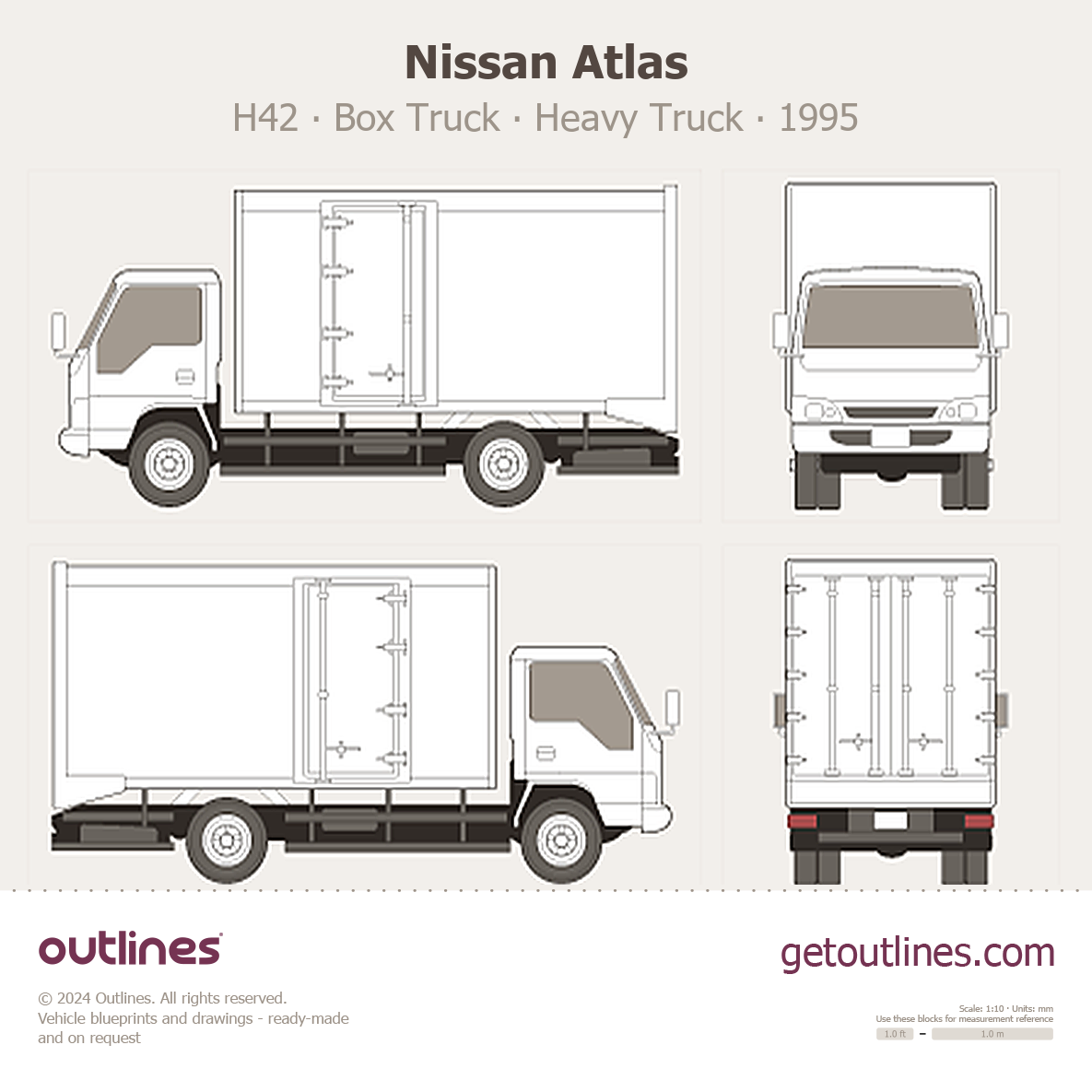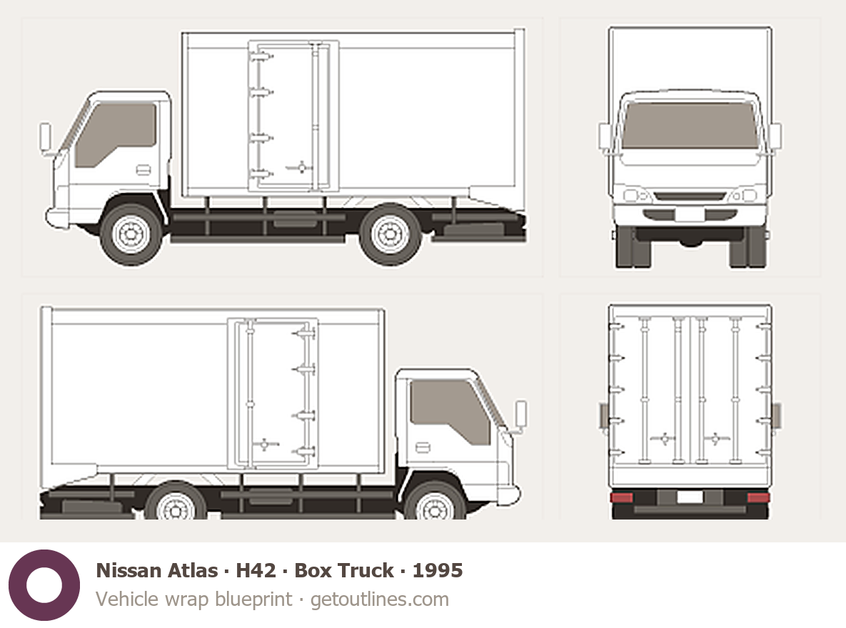 This 1995 Nissan Atlas H42 Box Truck Heavy Truck blueprint helps designers, wrap studios, and 3D artists simplify their workflow and save valuable time for creative work instead of routine tasks.