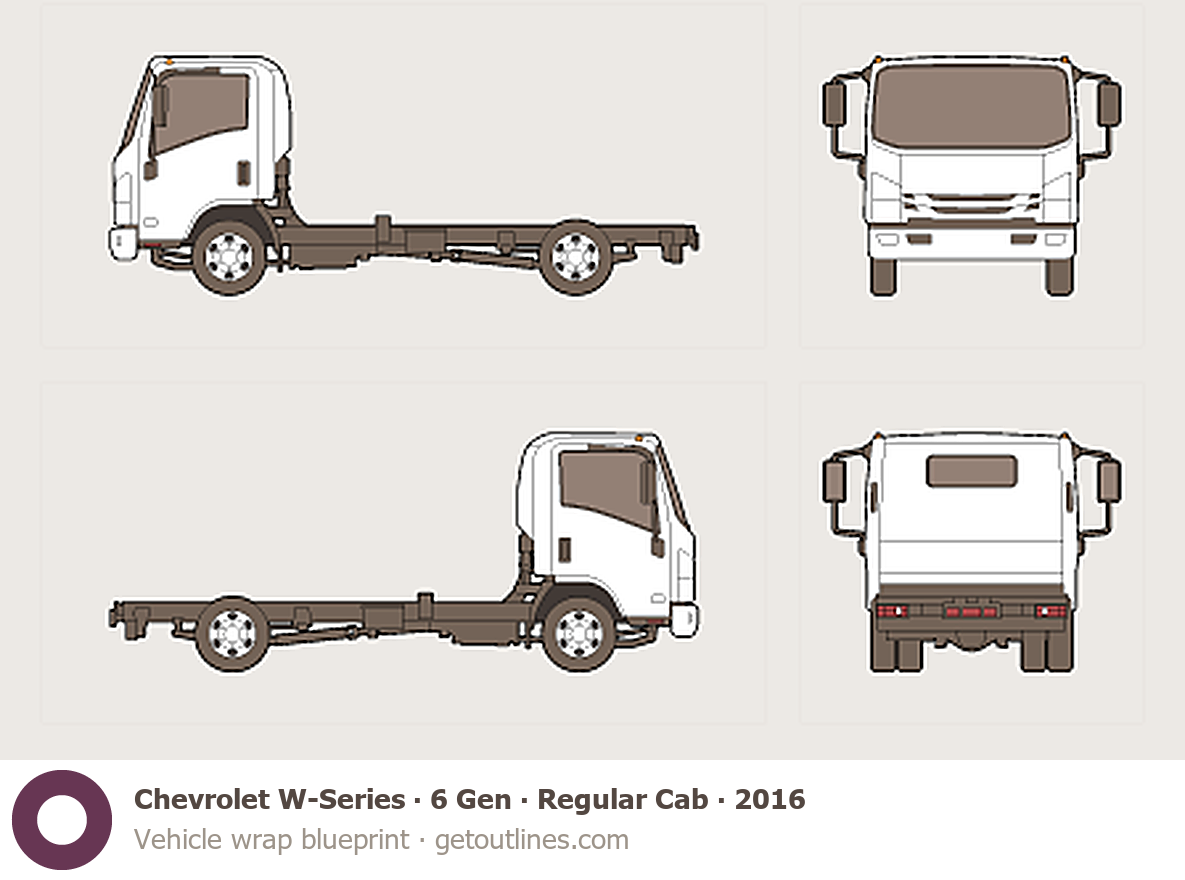 This 2016 Chevrolet W-Series 6 Gen Regular Cab Heavy Truck blueprint helps designers, wrap studios, and 3D artists simplify their workflow and save valuable time for creative work instead of routine tasks.
