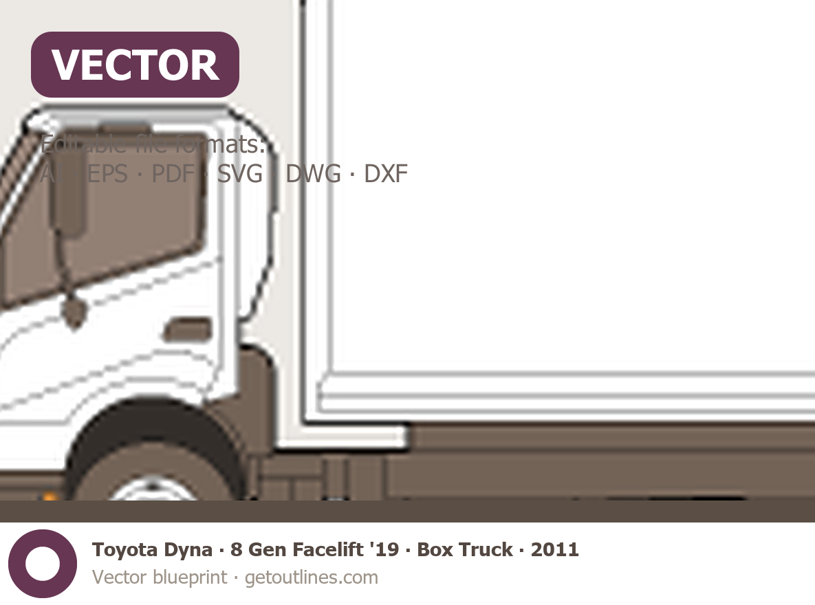 This 2011 Toyota Dyna 8 Gen Facelift '19 Box Truck Heavy Truck blueprint helps designers, wrap studios, and 3D artists simplify their workflow and save valuable time for creative work instead of routine tasks.