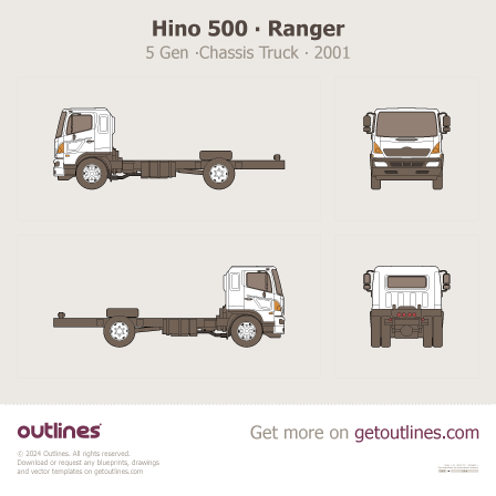 Buy this Hino 500 Series 5 Gen blueprint and line drawing in high-quality editable vector file formats. Best for 3D and car wrap design.