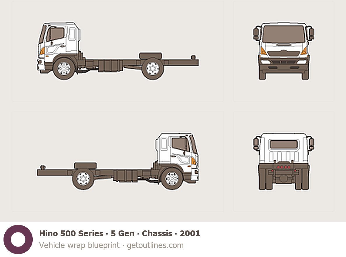 This 2001 Hino 500 Series 5 Gen Chassis Heavy Truck blueprint helps designers, wrap studios, and 3D artists simplify their workflow and save valuable time for creative work instead of routine tasks.