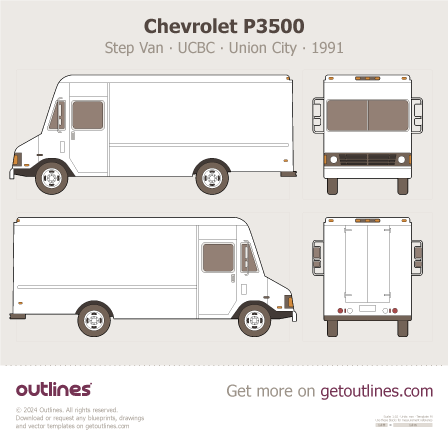 This 1991 Chevrolet P3500 Step Van ∙ UCBC ∙ Union City Van blueprint helps designers, wrap studios, and 3D artists simplify their workflow and save valuable time for creative work instead of routine tasks.