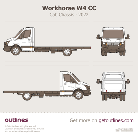 Buy this Workhorse W4 CC blueprint and line drawing in high-quality editable vector file formats. Best for 3D and car wrap design.