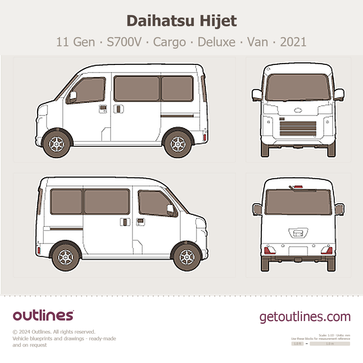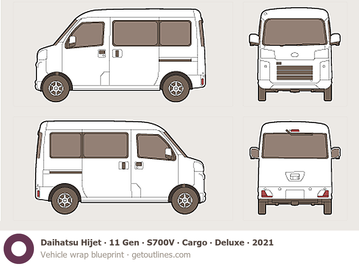 Buy this Daihatsu Hijet 11 Gen ∙ S700V blueprint and line drawing in high-quality editable vector file formats. Best for 3D and car wrap design.