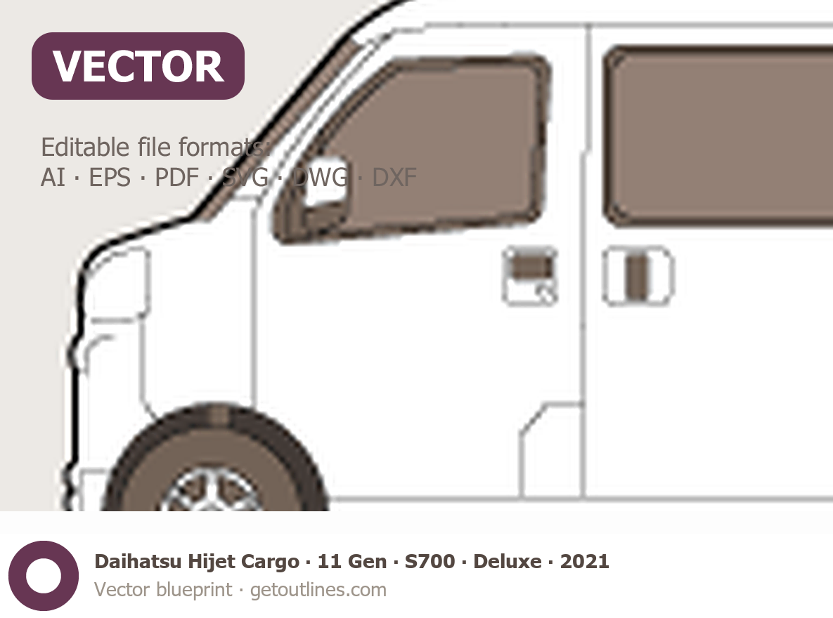 This 2021 Daihatsu Hijet Cargo 11 Gen ∙ S700 Deluxe Van blueprint helps designers, wrap studios, and 3D artists simplify their workflow and save valuable time for creative work instead of routine tasks.