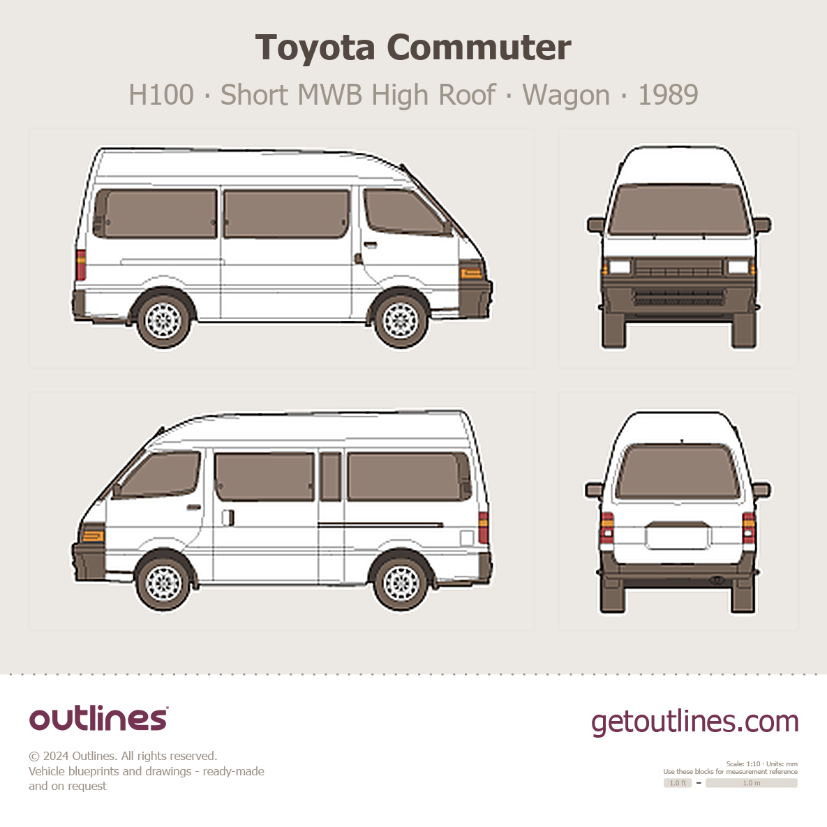 This is a blueprint of the Commuter, produced by carmaker Toyota in 1989 - 2015. It features a Wagon body design and is classified as a Commercial vehicle.
