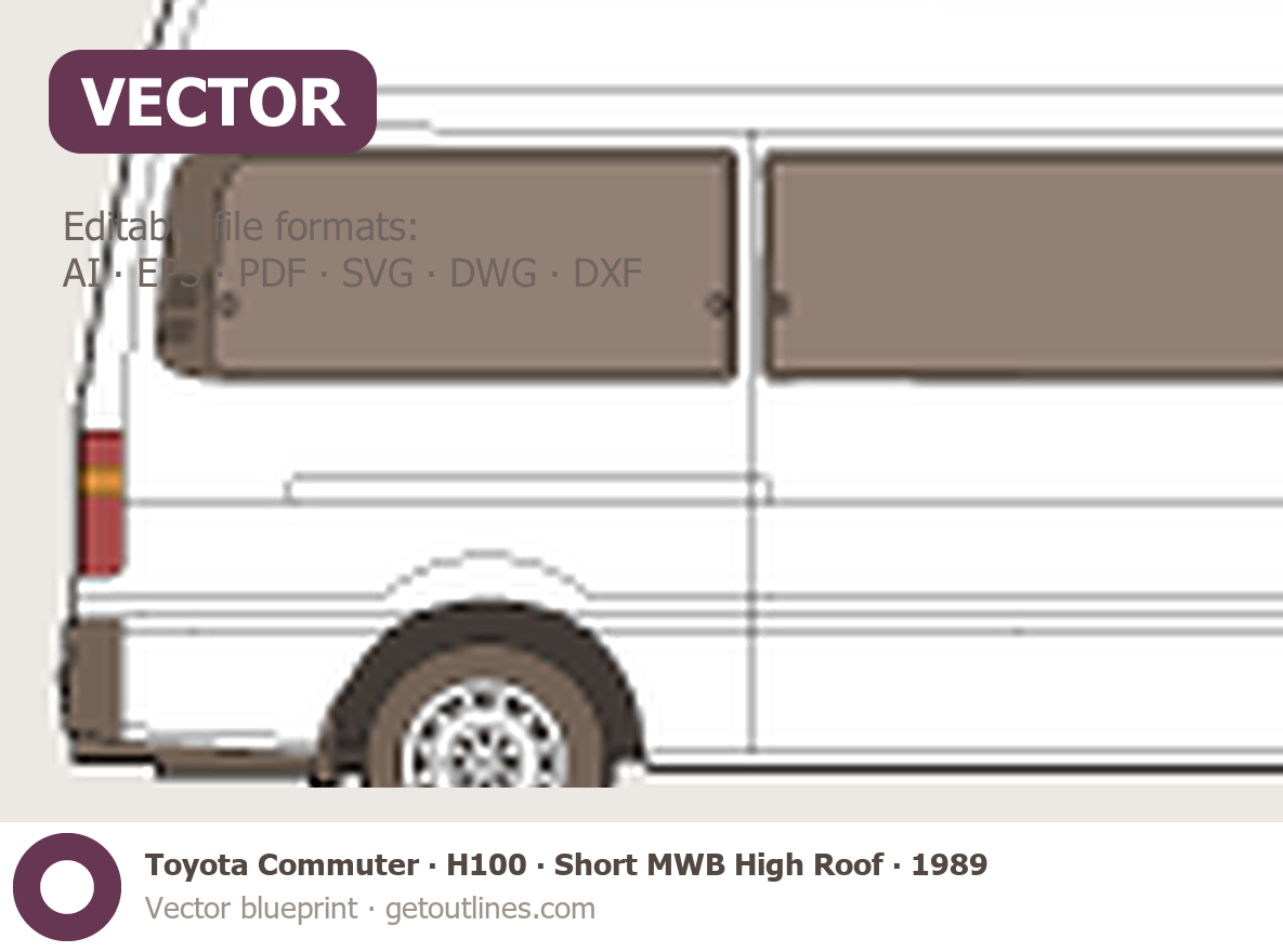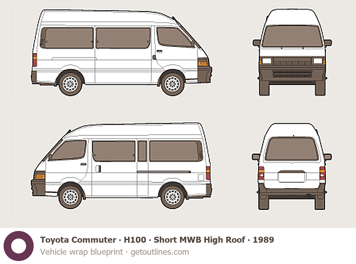 This 1989 Toyota Commuter H100 Short MWB High Roof Wagon blueprint helps designers, wrap studios, and 3D artists simplify their workflow and save valuable time for creative work instead of routine tasks.