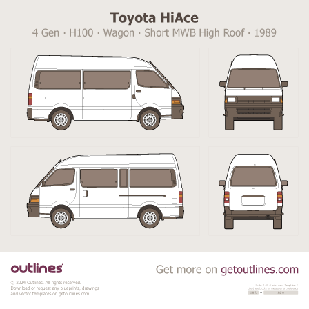 Buy this Toyota HiClass H100 blueprint and line drawing in high-quality editable vector file formats. Best for 3D and car wrap design.