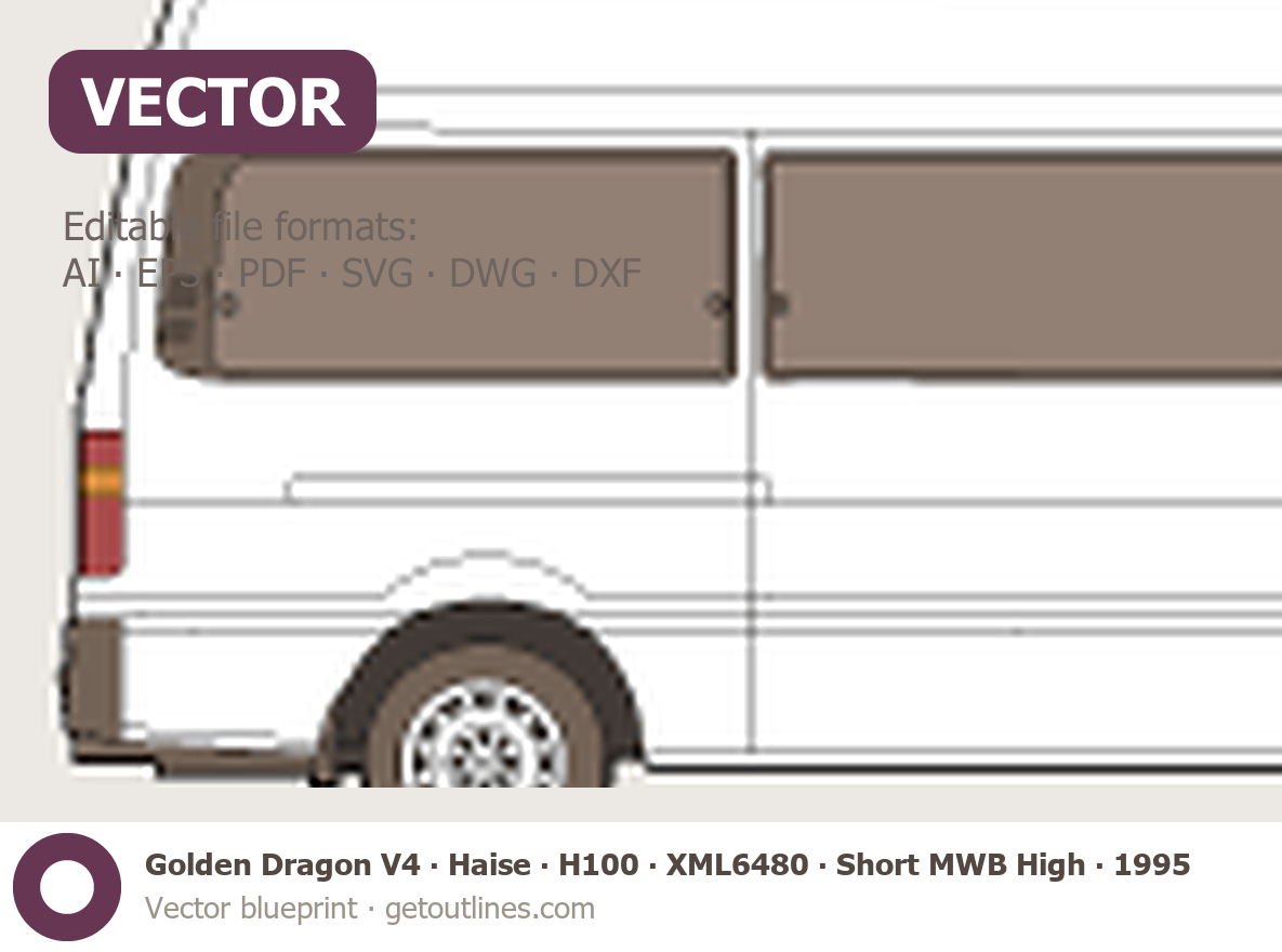 This 1995 Golden Dragon V4 ∙ Haise H100 ∙ XML6480 Short MWB High Roof Wagon blueprint helps designers, wrap studios, and 3D artists simplify their workflow and save valuable time for creative work instead of routine tasks.