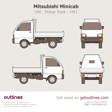 Buy this Mitsubishi Minicab Bravo U40 blueprint and line drawing in high-quality editable vector file formats. Best for 3D and car wrap design.