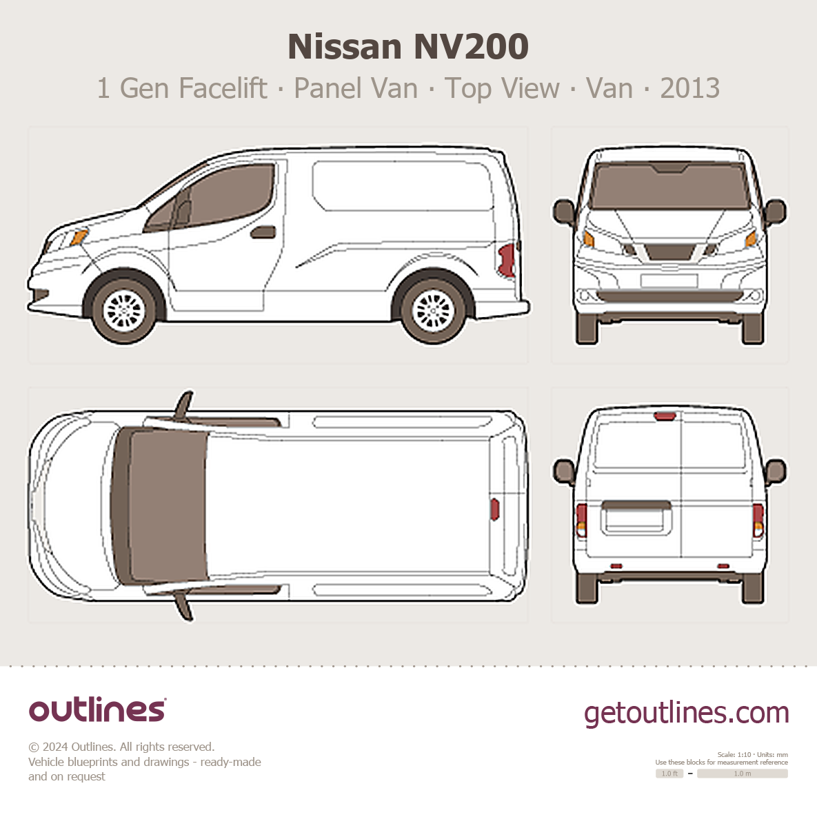 This is a blueprint of the NV200, produced by carmaker Nissan in 2013 - 2025. It features a Van body design and is classified as a Commercial vehicle.