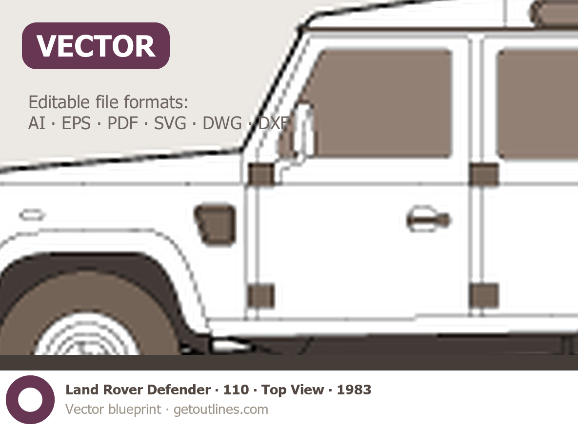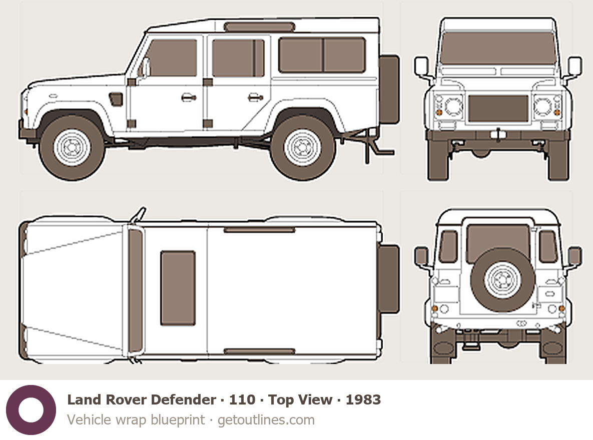 This 1983 Land Rover Defender 110 Top View SUV blueprint helps designers, wrap studios, and 3D artists simplify their workflow and save valuable time for creative work instead of routine tasks.