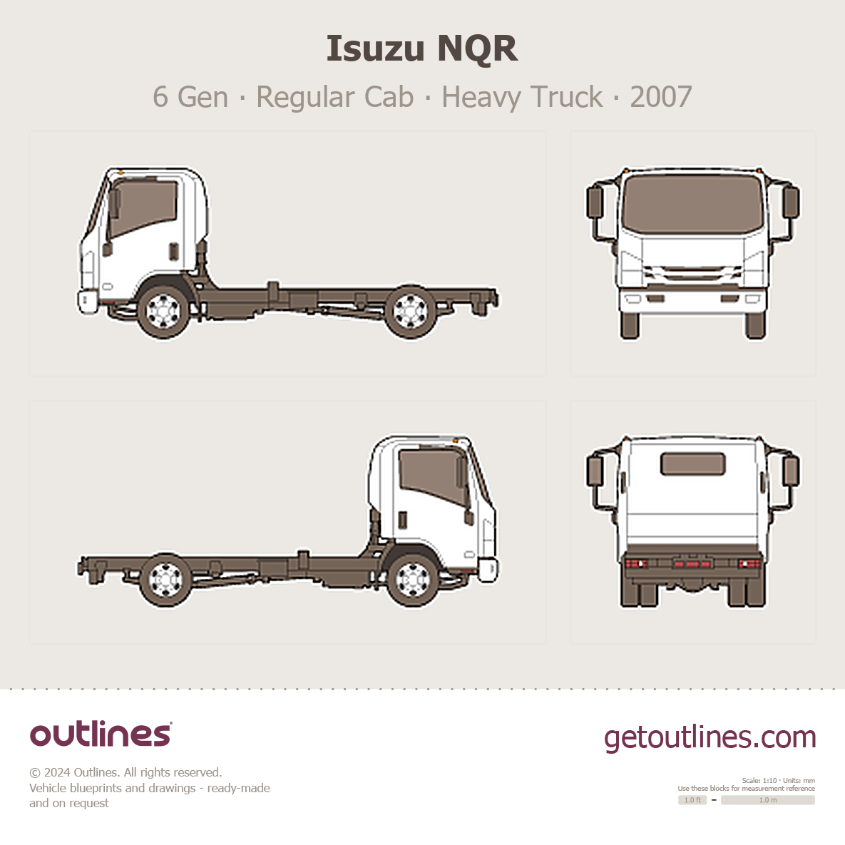 This is a blueprint of the NQR, produced by carmaker Isuzu in 2007 - 2023. It features a Heavy Truck body design and is classified as a Commercial vehicle.