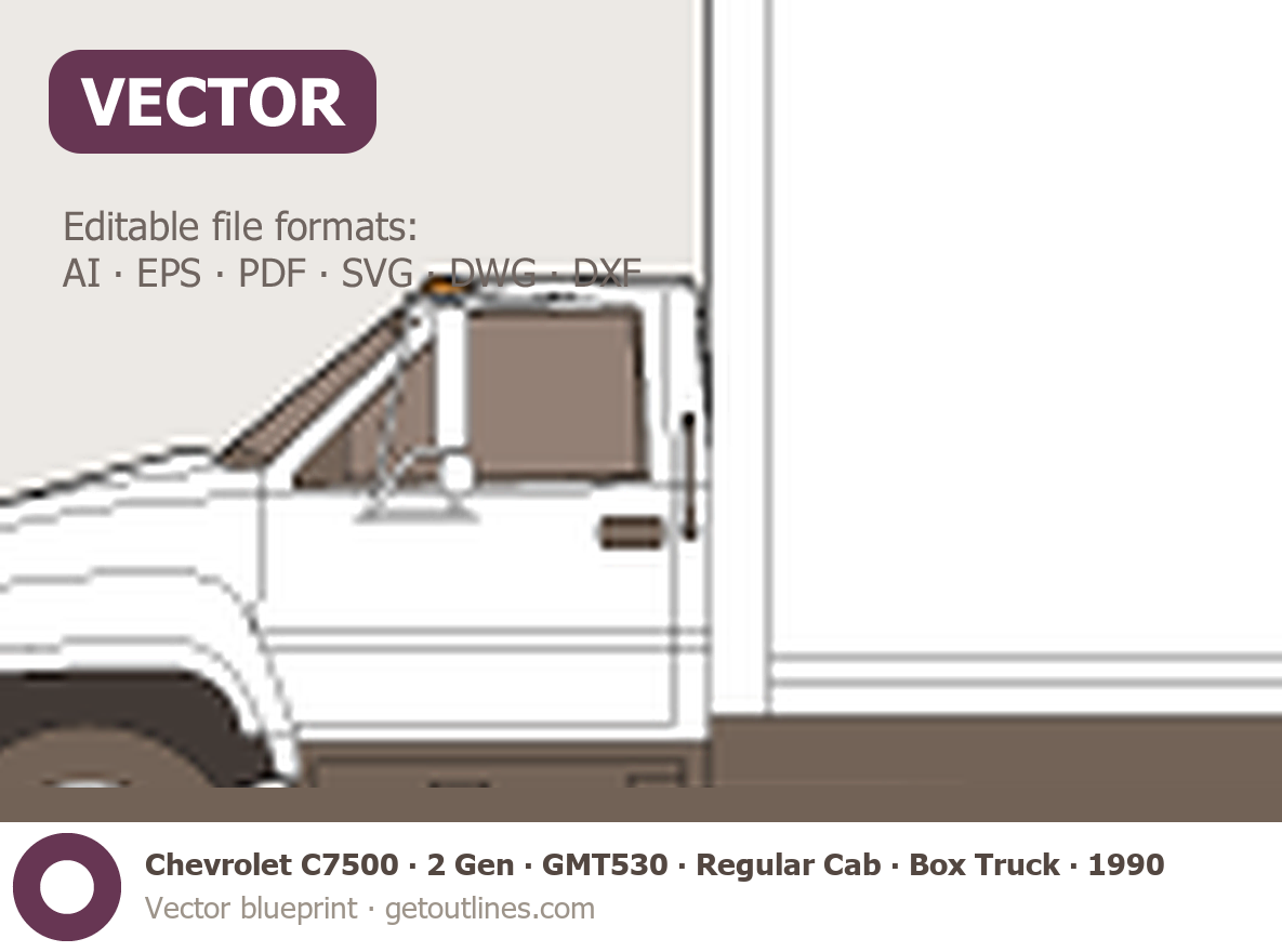 This 1990 Chevrolet C7500 2 Gen ∙ GMT530 Regular Cab ∙ Box Truck Heavy Truck blueprint helps designers, wrap studios, and 3D artists simplify their workflow and save valuable time for creative work instead of routine tasks.