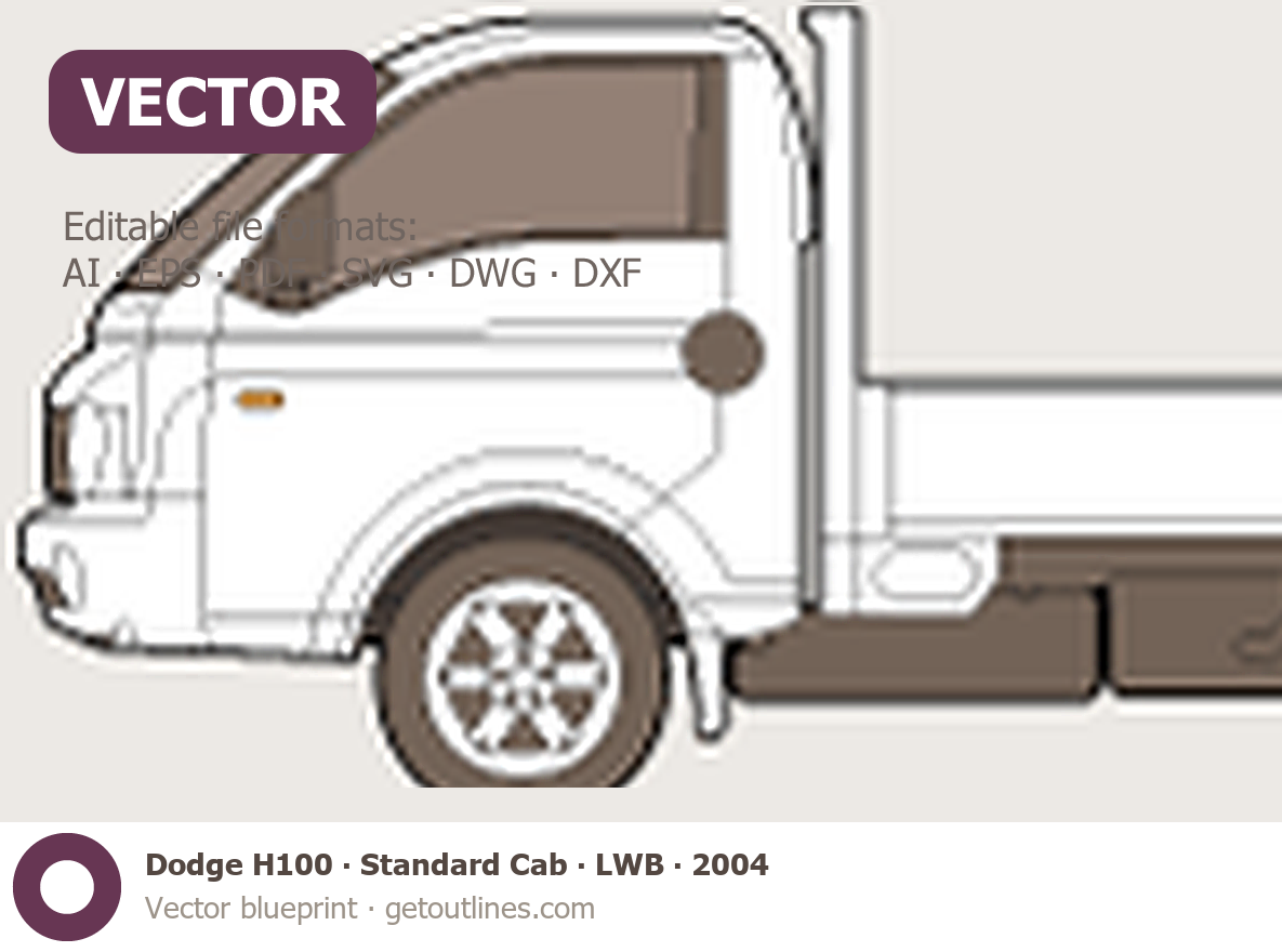 This 2004 Dodge H100 Standard Cab ∙ LWB Pickup Truck blueprint helps designers, wrap studios, and 3D artists simplify their workflow and save valuable time for creative work instead of routine tasks.