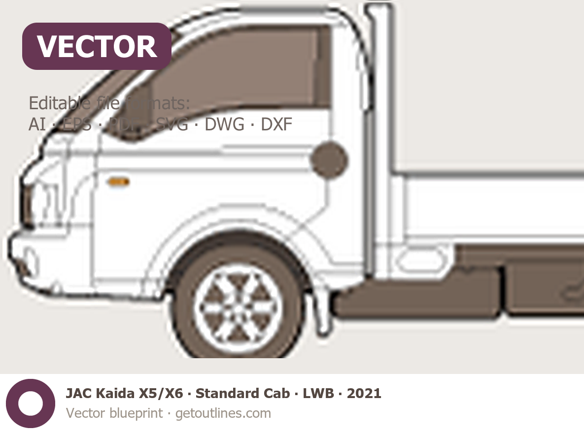Buy this JAC Kaida X5/X6 blueprint and line drawing in high-quality editable vector file formats. Best for 3D and car wrap design.
