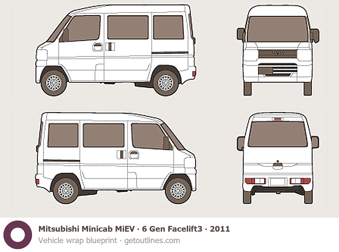 This 2011 Mitsubishi Minicab MiEV 6 Gen Facelift3 Van blueprint helps designers, wrap studios, and 3D artists simplify their workflow and save valuable time for creative work instead of routine tasks.