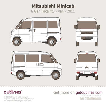 Buy this Mitsubishi Minicab EV 6 Gen Facelift3 blueprint and line drawing in high-quality editable vector file formats. Best for 3D and car wrap design.